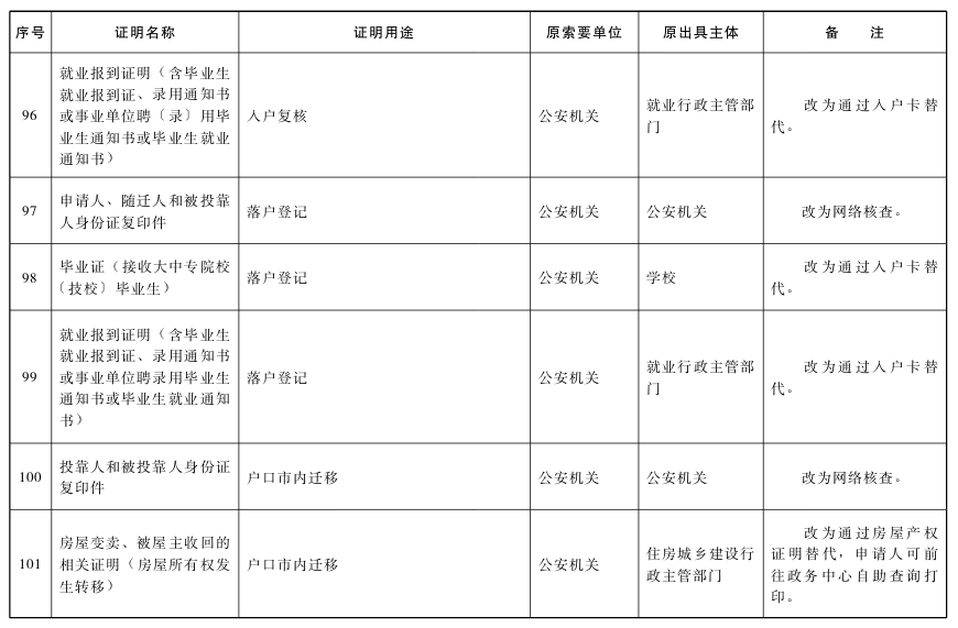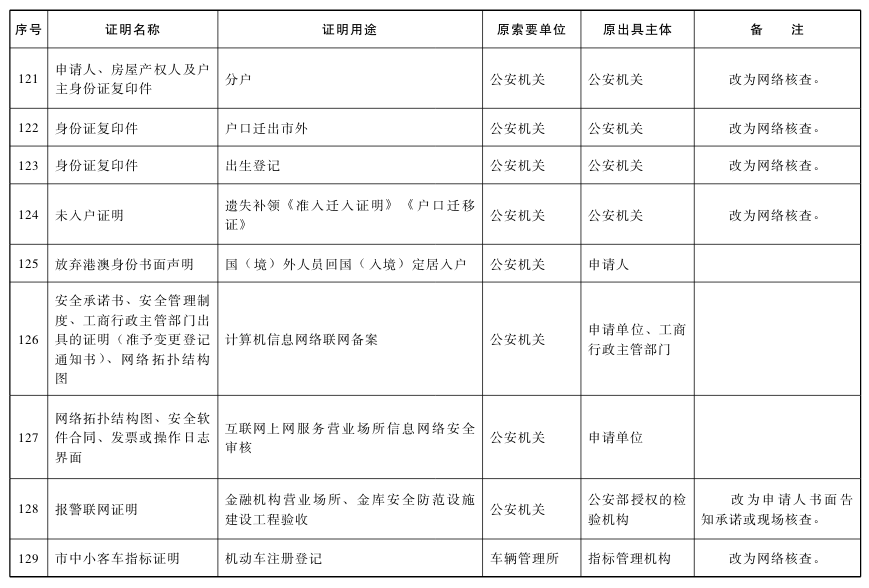 本通知自印發之日起施行,備注特定條件下才能取消的證明事項,自備注欄中注明的條件實現時正式取消。因機構改革新組建的部門承擔原部門職責的,由新組建的部門負責執行;部分職責調整到其他部門的,由承接該職責的部門負責執行。