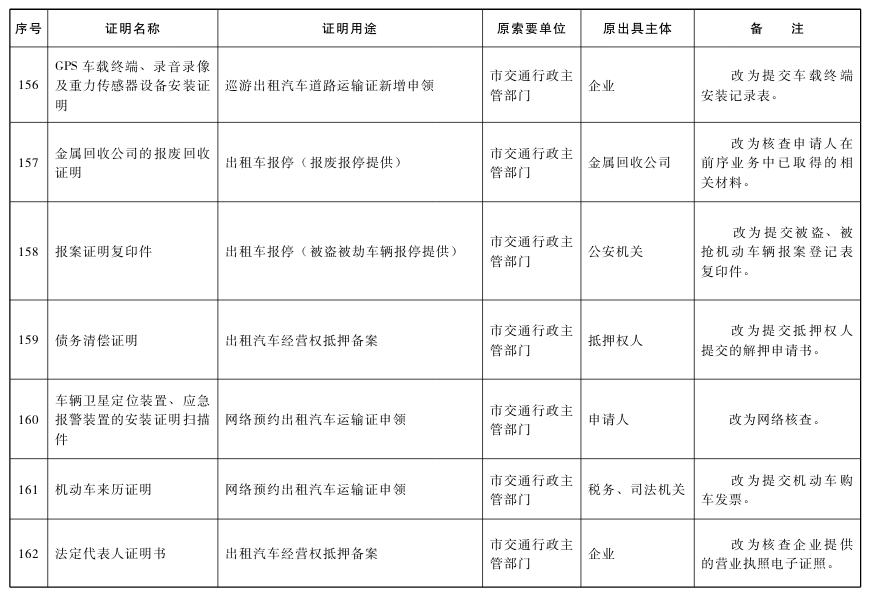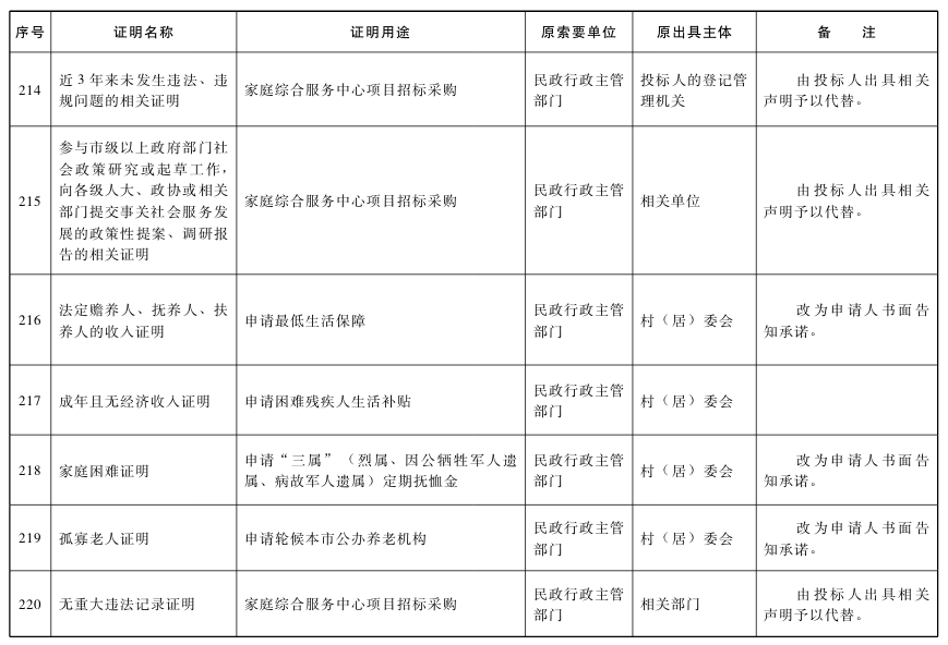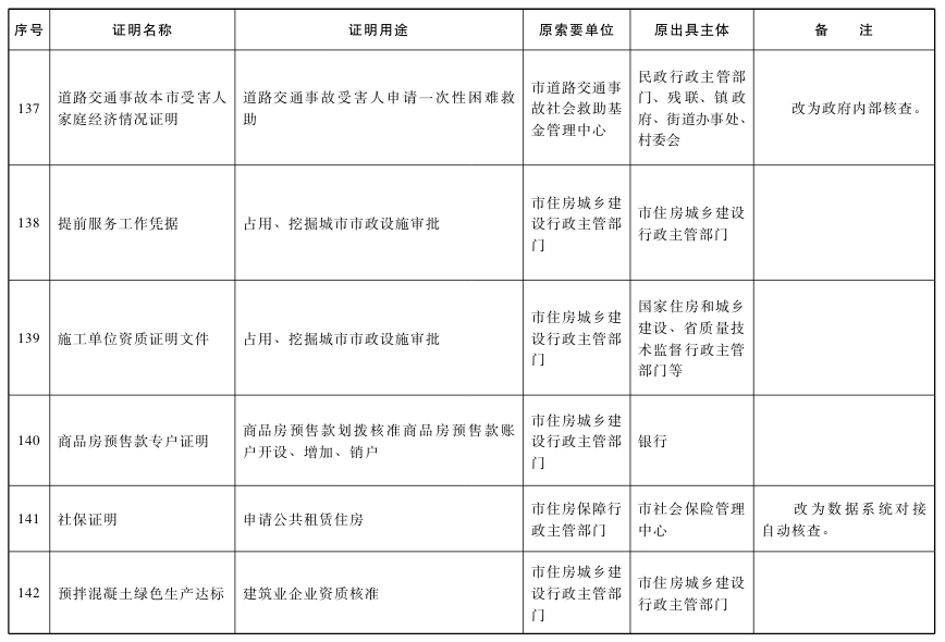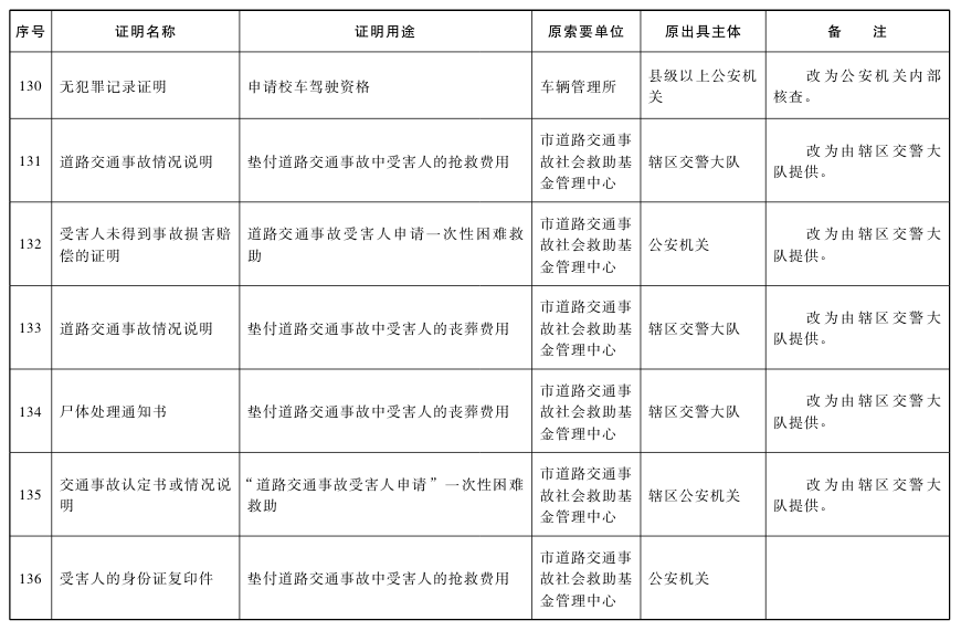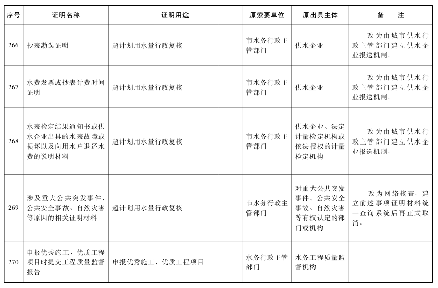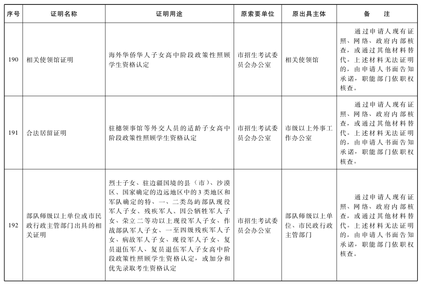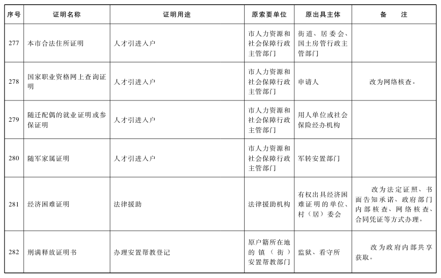 對附表列明取消的特定證明事項,不得再行要求辦事人提供。各區和市政府各部門、各直屬機構要本著減證便民、優化服務的精神,及時修改辦事指南、優化辦事流程,確保事項取消落到實處;要切實加大信息共享力度,通過信息共享、網絡核查、主動調查、告知承諾以及加大失信懲治力度等方式,確保監管責任落實到位。
