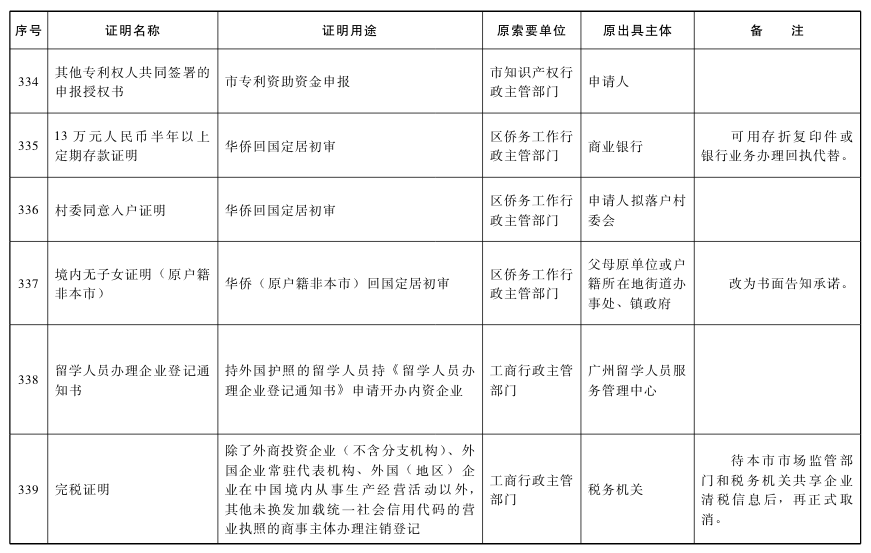 廣州市人民政府關于取消一批證明事項的通知