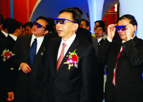 During the China (Guangzhou) International Information Industry Week, a series of events were held including the Agreement Signing Ceremony of China Software Industrial Base of Microsoft Corporation and the Memorandum Signing Ceremony of Cooperation on Construction of E-government Platform between Accenture and Informatization Office of Guangzhou Municipality. The photo shows the leaders were experiencing three-dimensional virtual reality simulation with 3D glasses.