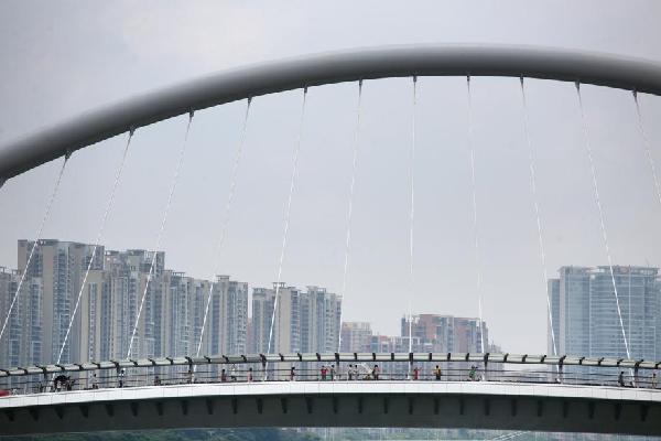 A new pedestrian bridge across the Pearl River was officially opened on Friday, adding a new iconic structure to Guangzhou, Guangdong province.