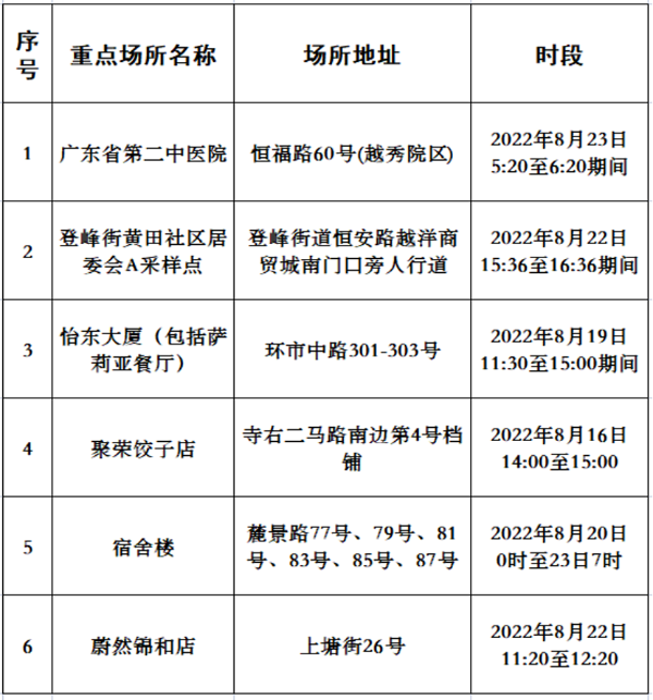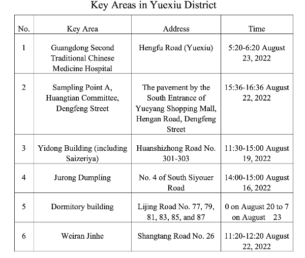 On August 24, all residents in the following key areas of Huadu District are required to take a nucleic acid test: