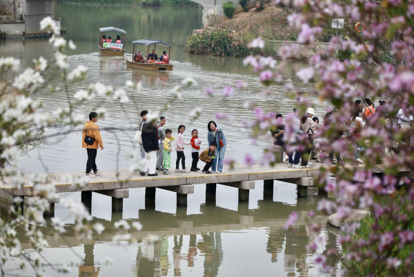 The wetland park is one of the most charming sights in the city. It recently launched a flower-themed festival, inviting visitors to witness blossoming sakura and bauhinia flowers. The festival will continue until late March.