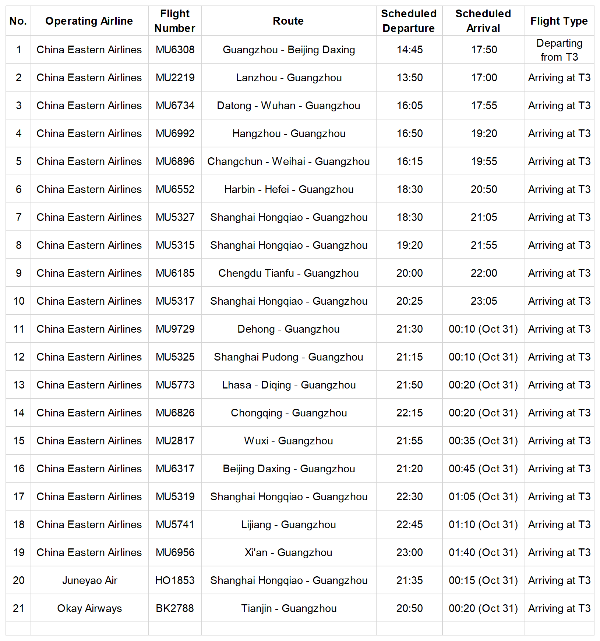 Starting October 30, all long-distance Airport Express bus routes will add a stop at T3. For detailed schedules, check the official "Baiyun Airport Express (白云機場空港快線)" WeChat account.