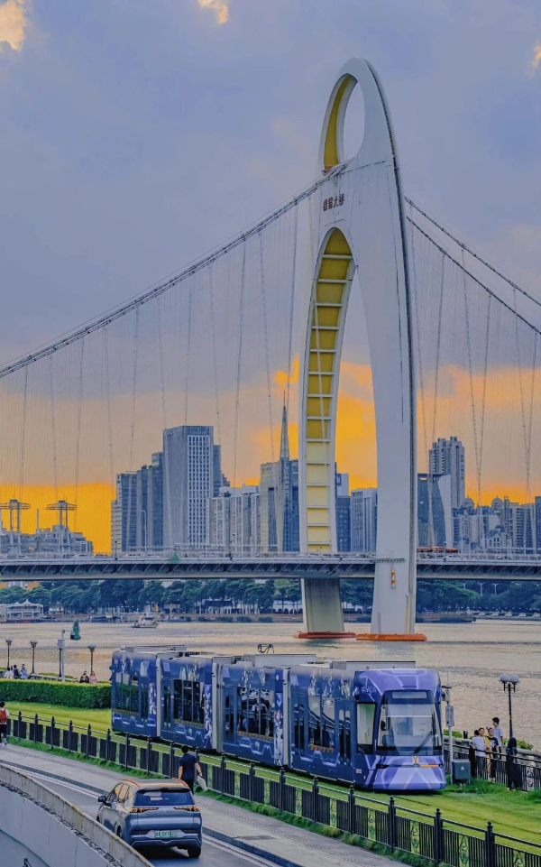 The Tram Haizhu 1 (THZ1),whichservesbetween Canton Tower and Wanshengwei, passes by the Guangzhou Opera House, Liede Bridge, Huangpu Ancient Port, and Party Pier. With its spectacular scenery and aesthetically designed stations, the tram rideis described as the "most beautiful 7.7 km" in Guangzhou. For just 2 RMB, you can enjoy river views and, duringautumn and winter, the blooming flowers along the route.