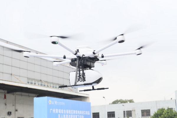 Huangpu District achieves "cross-border rapid delivery" of goods via drone.