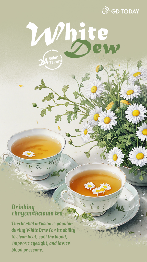 Drinking chrysanthemum tea: This herbal infusion is popular during White Dew for its ability to clear heat, cool the blood, improve eyesight, and lower blood pressure.