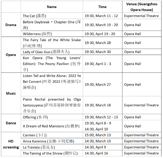 The fifth Women's Art Festival is underway in Guangzhou from March 4 to April 20, 2022. The festival brings 11 stage performances and 4 HD screenings of classic operas.
