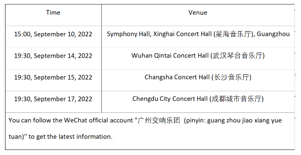 From September 10th to 17th, the Guangzhou Symphony Orchestra (GSO) will celebrate the 65th anniversary of its foundation with a national tour, featuring four concerts in Guangzhou, Wuhan, Changsha and Chengdu.
