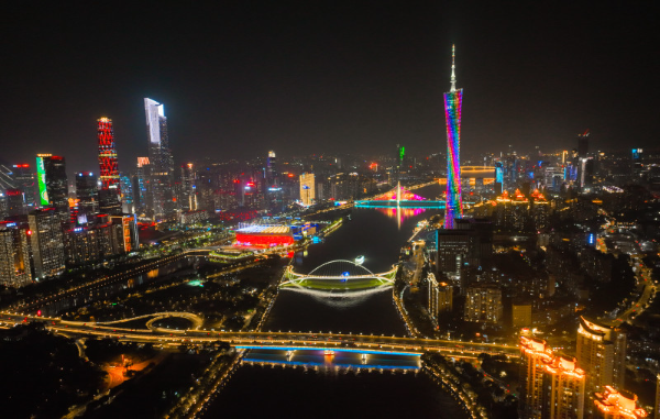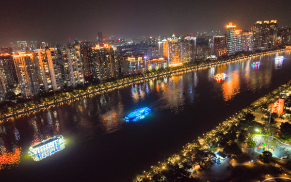 The light show of Beijing Road Pedestrian Street presents the diversity and innovation of Lingnan culture through national trends and intangible cultural heritage. And the light shows of the buildings along Yanjiang Road, Liede Bridge, and the buildings in Pazhou West District have been designed around the theme of "Appreciating the Pearl River at Night".