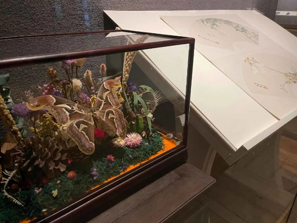 Furthermore, the design of the exhibition hall incorporates Lingnan garden elements such as octagonal gates, ceramic sunflower-shaped windows, and red brick fences, with green vines, two large peacock specimens, as well as specimens of other birds and insects as decoration. Visiting the exhibition is like a stroll in the botanical garden.