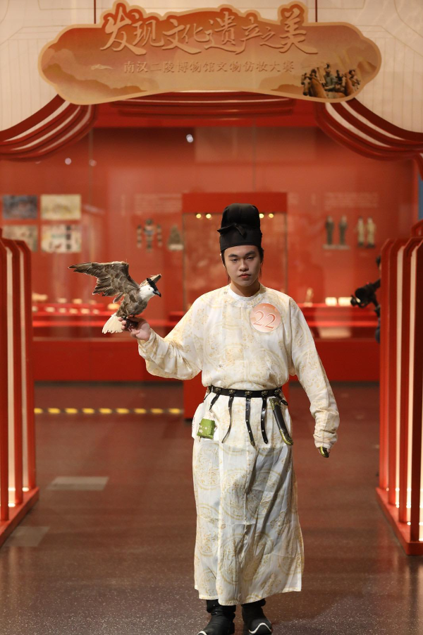 On January 27th, a "T" runway show of Hanfu took place at the Nanhan Erling Museum, presenting meticulously designed women adorned with peacock headpieces and Tang Dynasty-style hair buns, Hu ethnic people engaged in falconry and the like. This event also brought the live performance of a makeup transformation contest of cultural relics.