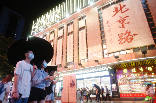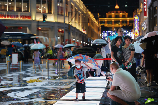 Featuring 376 arcade buildings with uniquely Lingnan cultural elements, the whole street will be lit up more brightly during the nights, and the 3D display screen for the naked eye at XinDaXin department store is the country's largest so far.