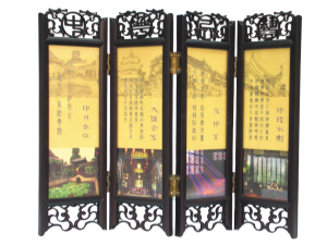 Yuyin Garden Screens are elaborate artwork featuring a combination of texts and patterns. Each screen consists of four sections. On each section, the upper part features elegant ink-wash texts, while the lower part shows landscape photos, reflecting a mutually complementary combination of traditions and modernity.