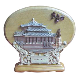 Sun Yat-sen's Memorial Hall Wood Sculptures depict two auspicious dragons standing on oval plates. In the middle of the sculpture are a replica of the Sun Yat-sen's memorial hall and a statue of Sun Yat-sen. The entire sculpture is simple, clear and highly representative.