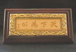 Huangpu Military Academy Plaques have a gilded base and bears the inscription of Mr. Sun Yat-sen's maxim ?C "The world is for all people." It advocates open-mindedness and international vision.