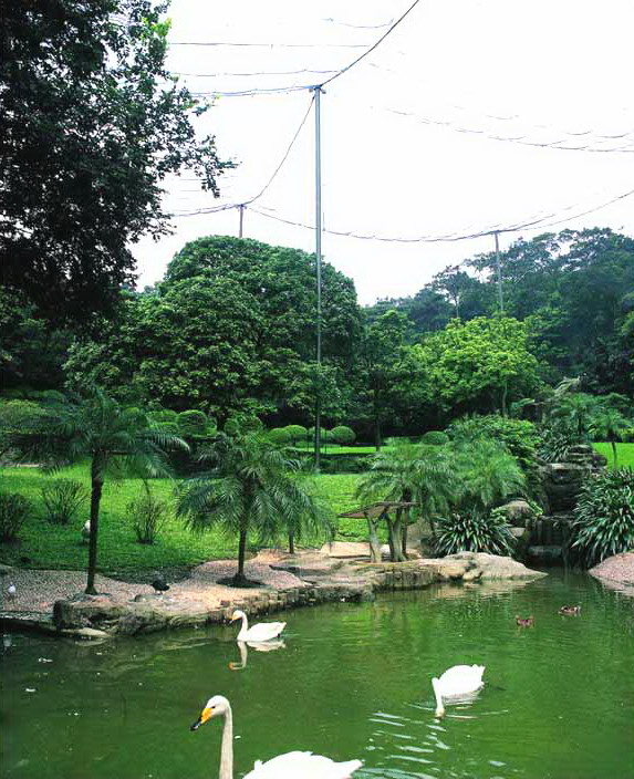 Mingchun Valley (Bird Spring Valley Park), is the largest natural birdcage in China, and covers an area of 56000 square meters. Built by the Guangzhou Municipal Government in 1989 and costing 5million Yuan, it was located in the valley floor of Dripping Water Rock between the First Peak under the Southern Sky in Baiyun Mountain and Jiulong Fountain.