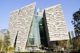 Located in Wenhua (Culture) Square of Zhujiang New Town, Guangzhou New Library constitutes one of the four landmark buildings of Guangzhou new axis (the other three buildings being Guangdong Museum, Guangzhou Opera House and Guangzhou No.2 Children's Palace).