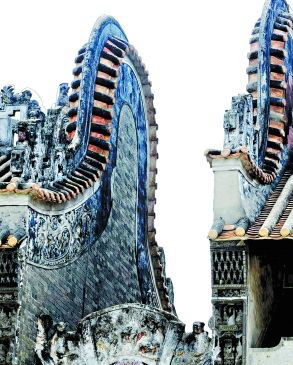Sanhua Village is located near a river, making it convenient in traffic to Guangzhou. Its past prosperity was no less than that of today. For its sound financing, Zizheng Dafu Temple was built with not only capacious halls but also exquisite craftsmanship. Guangdong's plastered sculpture, a wood carving, brick carving and painting decors can be seen everywhere. Be it the architecture components, main walls, ridges, arches, beams, square-columns, brackets, decorated brackets, windows and doors, or interior furniture, all are made elegantly.