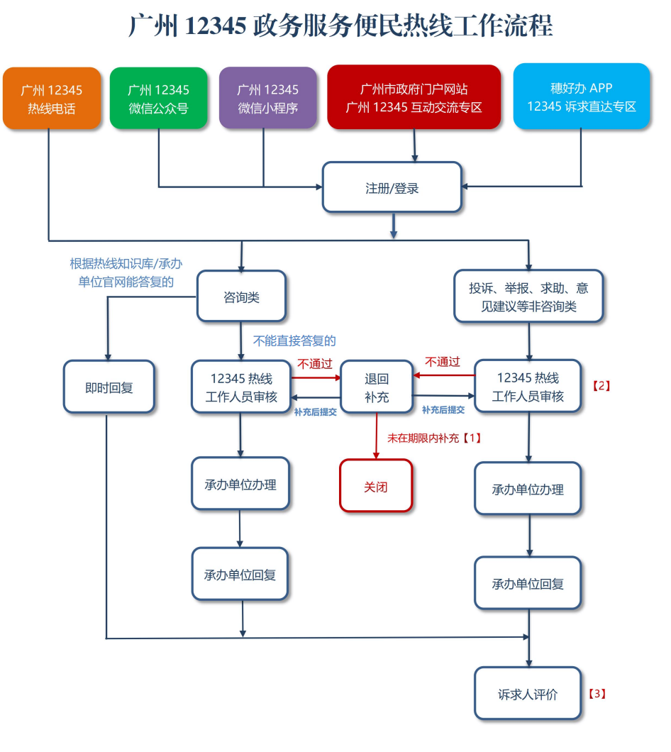 【1】熱線對(duì)訴求人通過電話渠道反映的訴求,經(jīng)審核需要訴求人補(bǔ)充信息方可處理的,應(yīng)當(dāng)聯(lián)系訴求人并一次性告知需要補(bǔ)充的內(nèi)容。熱線3次電話聯(lián)系(每次至少間隔15分鐘)訴求人均未接聽、訴求人拒絕補(bǔ)充或者補(bǔ)充后仍不符合要求的,熱線注明情況后結(jié)束工單。熱線對(duì)訴求人通過政府網(wǎng)站、政務(wù)新媒體等網(wǎng)絡(luò)渠道反映的訴求,經(jīng)審核需要訴求人補(bǔ)充信息方可處理的,應(yīng)當(dāng)一次性向訴求人發(fā)送補(bǔ)充信息通知,訴求人應(yīng)當(dāng)自收到通知之日起3個(gè)自然日內(nèi)補(bǔ)充,訴求人逾期未補(bǔ)充或者補(bǔ)充1次后仍不符合要求的,熱線注明情況后結(jié)束工單。