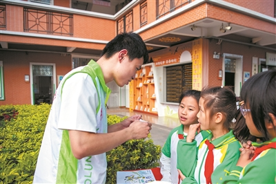 12月4日,在普法校園行活動(dòng)中,小學(xué)生參加問(wèn)答抽獎(jiǎng)