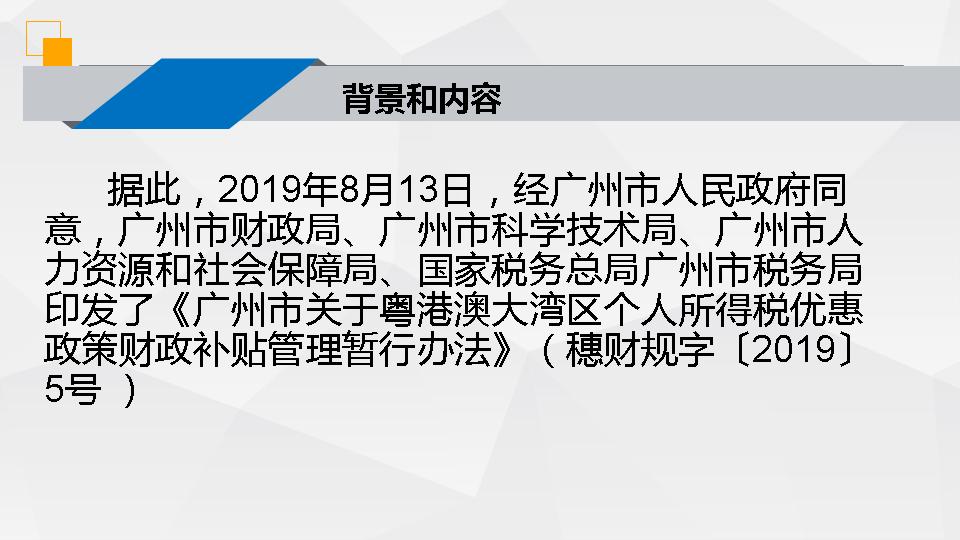 【一圖讀懂】《廣州市關于粵港澳大灣區個人所得稅優惠政策財政補貼管理暫行辦法》的圖解之一