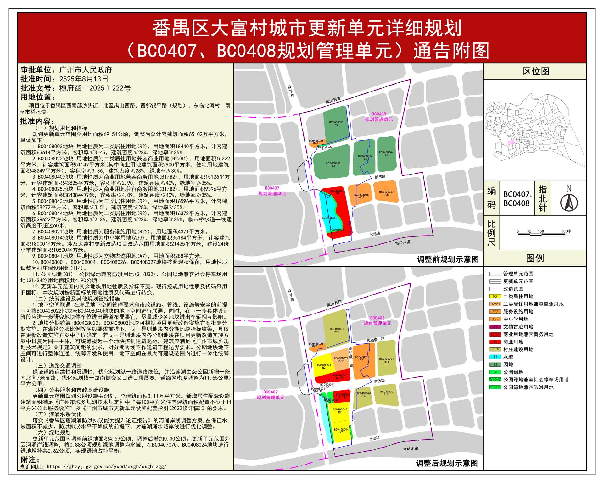 2. 《番禺區(qū)大富村城市更新單元詳細(xì)規(guī)劃(BC0407、BC0408規(guī)劃管理單元)》通告附圖