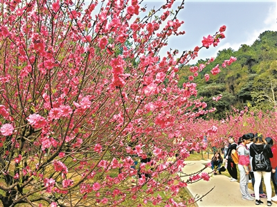 桃花自古多情,迎著春風,綻放些許深紅、些許粉紅、些許白色,自然而不留痕跡。在江門市江海區白水帶公園桃花園內,就有一片過百畝的桃花園,這里種植了碧桃和紅葉碧桃等多個品種共3000多棵桃花。