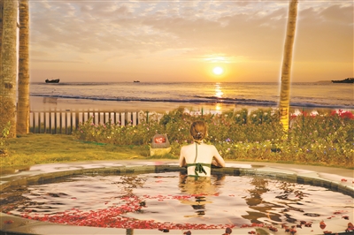 對于潮人來說,這里特別適合打卡。茂名浪漫海岸國際旅游度假區是廣東首席“浪漫”主題度假區,擁有5.3公里生態海岸線,設有LOVE地標、詩歌殿堂、水晶禮堂、西海岸燈光秀、望海溫泉浪漫約會打卡點。這個冬天,還能泡望海溫泉。海溫泉引入御水古溫泉純天然泉水,有10多個溫泉泡池、各種海洋主題功能房和獨有的望海沙浴。不管是日出或月落,全程都能夠眺望大海的景致,夜間還能賞星月交輝,感受舒爽的海風。新年之際,這里還將舉辦跨年音樂節,為期三天。