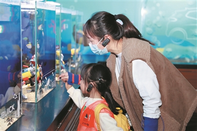 假期期間,除了欣賞海底新景觀之外,親子家庭可跟隨講解員一邊探索海底世界,一邊豐富海洋知識。作為海洋館里的小明星,去年11月4日在正佳極地海洋世界里出生的廣州首次成功繁育的小白鯨“小五”已經(jīng)一歲多了,“小五”是中國第5頭人工環(huán)境自然懷孕和順產(chǎn)的小白鯨,如今已經(jīng)長大不少,可愛的它得到了不少親子家庭的喜愛。