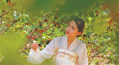 在桑果樹下拍照感受不一樣的春意