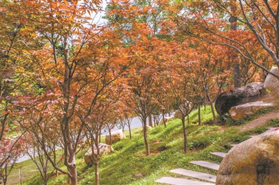 同樣的美景也出現在石門國家森林公園和帽峰山森林公園。隨著氣溫下降,位于廣州市從化區石門國家森林公園里3000多畝紅葉漸次染紅。紅葉以楓香樹、山烏桕和槭樹為主要品種。在帽峰山,葉落成詩,公園里的每個角落都能邂逅如詩的景色。山林田野間層林盡染、五彩繽紛。