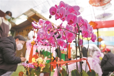 新春將至,市民在花卉市場內選購蝴蝶蘭。