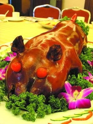 金牌燒乳豬因其曾獲國家商業部產品評比“金鼎獎”而得名,是宴席上名貴的粵菜佳肴。燒乳豬技藝在南北朝時也相當精湛,已有1400多年的歷史。