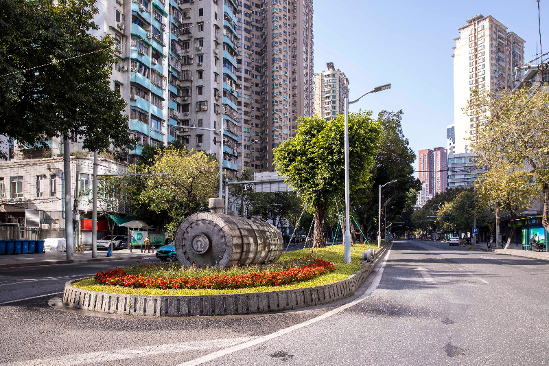 白云路中間綠化帶上的火車元素,記錄著位于此路的廣九火車站這段歷史。