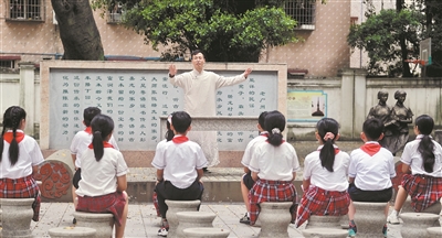“槎龍村文化底蘊深厚,既是講古泰斗張悅楷的家鄉,又是粵語講古傳承人彭嘉志的家鄉。作為廣東省中華優秀傳統文化傳承學校、廣州市非物質文化遺產傳承基地,我們一定要將中華優秀傳統文化傳承下去,弘揚光大。”槎龍鎮泰小學校長李春玲介紹,校內古榕樹群構成的空間已成為學校開展尚善教育的文化傳承地了。