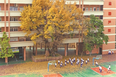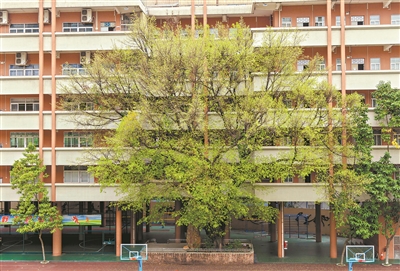 操場邊的大葉榕,春來葉子轉(zhuǎn)色,滿目金黃;又在幾日之內(nèi)褪去一身“金衣”,生發(fā)出嫩黃細(xì)葉,繼而綻放出一樹青翠。年年歲歲,周而復(fù)始……這便是廣州市第十六中學(xué)一代代學(xué)子的集體記憶了。