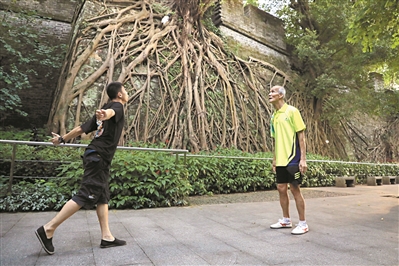 “老廣”金溢潮是一位老醫生,十余年前罹患中風,此后,在越秀公園的林間小徑步行成了他抗病延年的運動項目。每個工作日的清晨,他都會沿著越秀公園古城墻步行,再搭乘地鐵上班。步行三年多,金溢潮見證著城墻上的榕樹根與古城墻結緣相伴、相棲相息……在經受風雨冰霜、四季遞嬗的洗禮中和諧相處、共生共榮,此情此景讓人動容,金溢潮有感而發,寫下一首名為《墻根緣》的小詩——根護墻、墻養根,根基相連,長相廝守、相互依存。