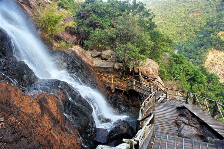 為了使游人在登山觀瀑吸氧的過(guò)程中獲得最舒適的享受,白水寨園區(qū)內(nèi)規(guī)劃了多條登山路線。除了廣東最長(zhǎng)的登山步道––有9999級(jí)石階的“天南第一梯”,以及全國(guó)唯一一條用海船木建造的親水棧道外,游人還可以選擇乘坐觀光車到上山觀光。此外,在白水寨山下還建有廣東首條綠道“白水綠道”、全國(guó)首個(gè)原生態(tài)山水樂(lè)園、荔鄉(xiāng)風(fēng)味餐廳和太陽(yáng)花廣場(chǎng)等游玩及游覽設(shè)施,讓游客盡情放松。