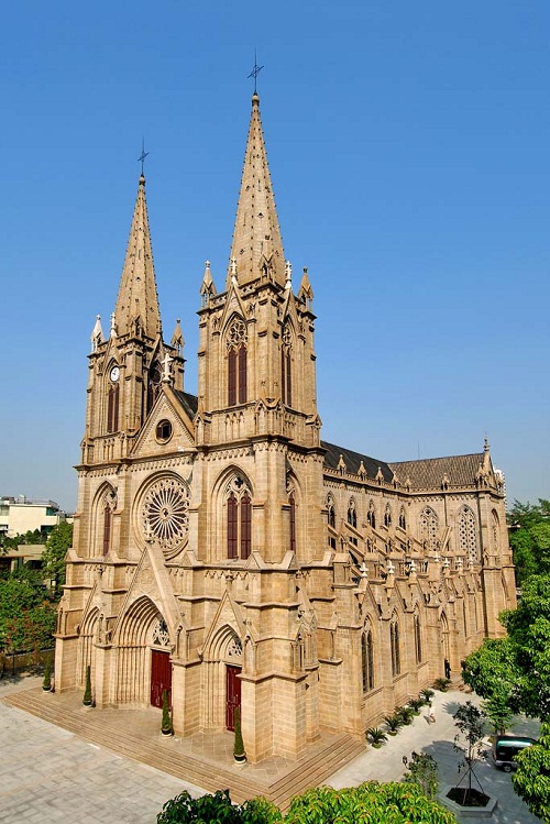 石室天主堂于1888年建成,歷時(shí)25年,建筑面積2,754平方米,東西寬35米,南北長(zhǎng)78.69米,由地面到塔尖高58.5米。教堂造型挺拔,內(nèi)部空間深遠(yuǎn),細(xì)部做工精美,高聳的塔樓,巨型的柱束,屋頂?shù)募夤耙约盎ù皺糇罹咛厣菛|南亞唯一一座用花崗巖石砌成、保存比較完整的“哥特式”大教堂,是中世紀(jì)“哥特復(fù)興式”建筑的再現(xiàn),是中國(guó)勞動(dòng)人民高超智慧的結(jié)晶,具有極高的歷史價(jià)值、建筑價(jià)值和藝術(shù)價(jià)值,聞名東南亞。2004年廣州市政府撥出1900多萬(wàn)元???、教會(huì)自籌300萬(wàn)元對(duì)石室天主堂進(jìn)行全面維修,歷時(shí)2年,于2006年10月竣工,可容納1800人。亞運(yùn)前后,市政府先后撥款468萬(wàn)元用于維修教堂及主教府。石室教堂以建筑雄偉獨(dú)特,環(huán)境寬敞優(yōu)美,配套設(shè)施完善,整體面貌一新,廣為中外人士贊賞。