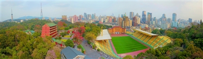 2月14日,航拍紅棉盛開下的鎮海樓。