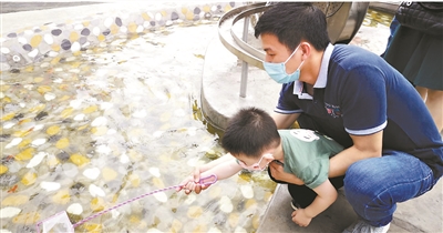 歡樂舟樂園位于白云區三舊改造重點項目——安華匯頂樓,搭乘電梯直達8樓,走上天臺,一個超大的戶外公園就在眼前。天面公園是橫跨8-9層的戶外大平臺。帶上孩子,先去中央大草坪嬉戲奔跑,現場的魔術師和藝人會不時為大家送上禮物。草坪旁的帳篷里,一家大小還可以在鮮花叢中欣賞各種蝴蝶。接著,一家人可以前往大草坪西側的嬉水廣場,在河道邊撈魚。家住白云區的林同學表示:“這個天臺離家很近,項目好多,以后會常來。”