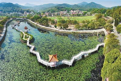 靜的,是甘竹山公園景觀涼亭、長廊水榭,是大夫山森林公園的峰巒起伏、湖光倒影,是花都湖公園濱水綠道、游憩綠道,是云溪生態公園的翠色欲流、綠草如茵……