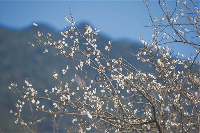 據悉,一年之中梅樹開花分三度,稱為“梅花三弄”。“梅花一弄”時有零星小花掛枝頭,以含苞待放的花骨朵為多。“梅花二弄”的花景最美,朵朵梅花芳香四溢,純白勝雪。“梅花三弄”時,梅花慢慢褪去,孕育出一顆顆小小的青梅果。今年由于降溫較早,梅花花期早了半個月,目前已經有“梅花一弄”的美景了。