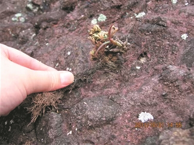 為了培育鐵皮石斛新品種,研究人員需要收集野生的鐵皮石斛資源。2011年年底,他們前往梅州市平遠(yuǎn)縣的五指石山上搜尋。“臨近太陽下山時(shí),我們才發(fā)現(xiàn)一株小小的鐵皮石斛,它長(zhǎng)在幾近干枯的卷柏(當(dāng)?shù)亟凶鳌凰啦荨┥厦妗薄6慰』貞浾f,一路上山下山幾乎無路,采集完畢回到住宿的地方時(shí)天已大黑,雖然辛苦,卻感覺非常值得。