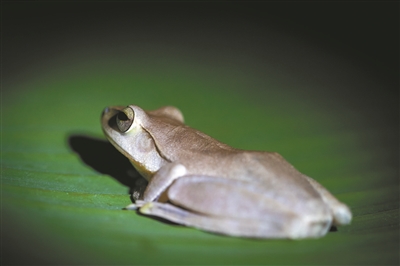 在夜里,斑腿泛樹蛙呈現出深棕色