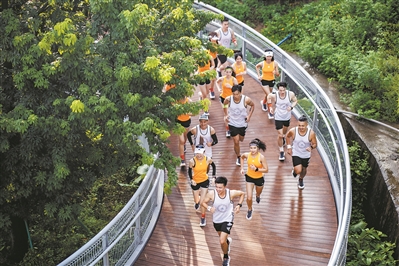 長達8公里的“空中云道”串聯(lián)多個城市公園,是供游人慢行享受“綠生活”的越秀碧道
