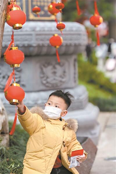北京路的紅燈籠在風中搖曳,玩耍的孩子像在追逐春天。