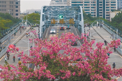 ●20世紀(jì)70年代,為緩解橋上交通擁堵,海珠橋進(jìn)行了擴(kuò)建。橋?qū)捰?8.3米增至33米,并設(shè)置了非機(jī)動車道。