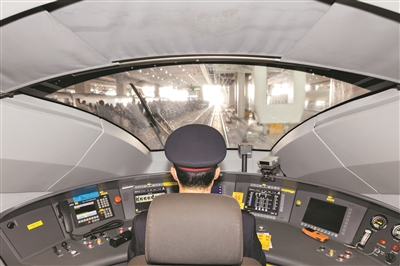 駕駛員在聚精會神把握列車方向